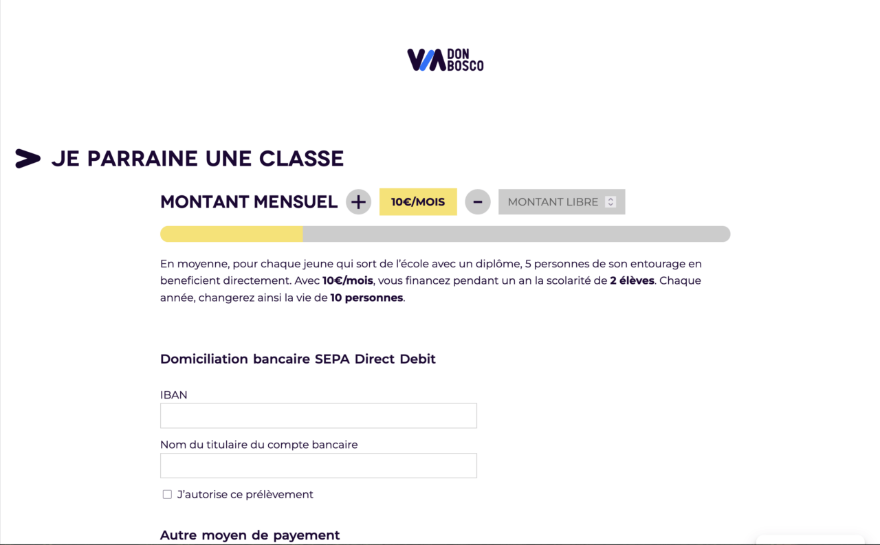 J’ai utilisé l’API du CRM SalesForce pour relooker sur mesure les formulaires de la campagne de donation. Résultat un funnel de donation qui optimise le taux de conversion :